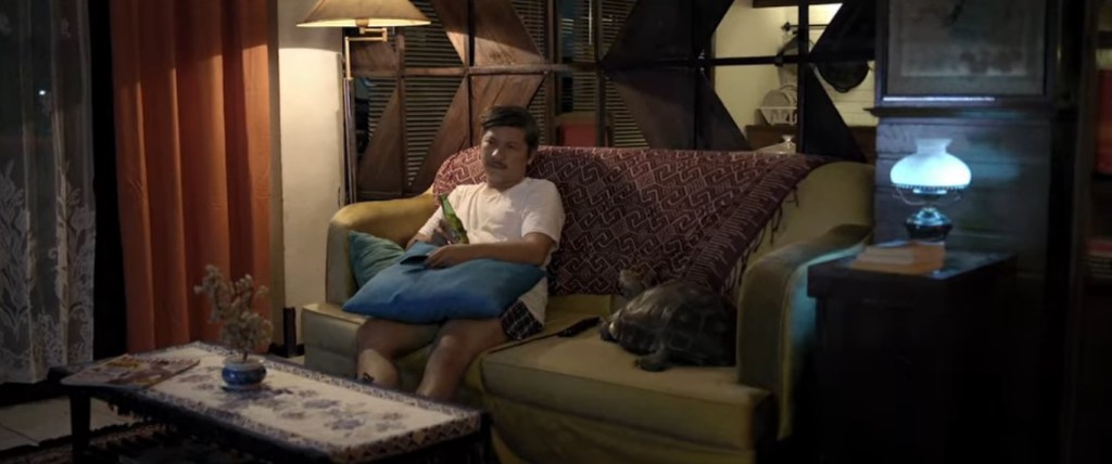 The movie is opened with the mundane life of Richard (Gading Marten), a single man in his 40’s, wearing the underwear and undershirt while casually doing his morning routine. He owns a quite enormous tortoise and often has an instant noodle as a breakfast.